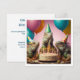 En rolig födelsedagsinbjudan med iguanor som äter tårta och bär födelsedags hattar, perfekt för ödlegynnare och reptilälskare.