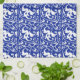 Ikat blom- damast - koboltblått och vit kökshandduk