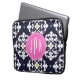 En gåva som kan vara personlig med ditt monogram inuti rosan i mitten. Bakgrunden är marinblått och vitt ikat mönster.
