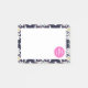 En gåva som kan vara personlig med ditt monogram inuti rosan i mitten. Bakgrunden är marinblått och vitt ikat mönster.
