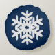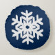 Ikat Snowflake - White and Mörk Navy Blue Rund Kudde