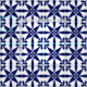 Digital reproduktion av ett stiliserat fyrpunktsstjärnigt mönster med en strimmig, ikat woven struktur - marinblått/indigo mönster på vit bakgrund