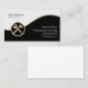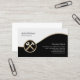 Det här affärskortet för hemreparationer har svarta och vita segment som avgränsas av en vågigt guld-remsa. En guld-ikon i elegant med skiftnyckel och hammare ljuger på den nedre lämnat sidan av konstruktionen, som i allmänhet är lämplig för företag eller yrken som har samband med konstruktion, entreprenör, reparation i hemmet, reparationer, handyman, kvalificerad arbetskraft, kvalificerad arbetskraft, fackkunskaper, fackområden.