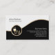 Det här elektrikerska affärskortet har svarta och vita segment som avgränsas av en vågigt guld-remsa. En guld-ikon för elegant av en eluttag ljuger på den nedre lämnat sidan av konstruktionen, som i allmänhet är lämplig för företag eller yrken som har samband med konstruktion, entreprenör, hemreparation, reparationer, handyman, kvalificerad arbetskraft, fackutbildad arbetskraft, fackkunskaper och fackområden.