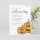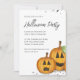 Målad orange vismiskt Jack o lantern i ett pumpplåster. Lägg till en egen URL med en QR-kod och en karta-ikon. Dessa orangar i perfekten och löv i grönten gör en underbar utformning för alla produkter. Målade effekter eller vattenfärgseffekter. Pumpor enkla, vismliknande jackar o'lanternor, läskläck Halloween, inbjudningar till Halloween fest, orange svartvit minimalistisk, modern kalligrafskrift typsnitt, vit typografiktext, leende jack o'lanternor, lanternor söta pumpor happy halloween, oktober hösten party inbjudningskort
