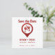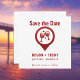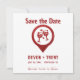 Modern, minimalistisk Spara datum meddelande har den röda glitter party-platsikonen med anpassade på vit bakgrund. Finns i tryckt och digital form.