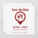 Modern, minimalistisk Spara datum meddelande har den röda glitter party-platsikonen med anpassade på vit bakgrund. Finns i tryckt och digital form.