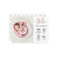 Ett modernt och minimalistiskt födelseattest med ett bild i ditt nyfödda flicka, med en övertäckningstext i rosa och mörk grått typsnitt som läste Hej, är jag Elizabeth (anpassade med din baby). Födelsestatusen kan anpassas genom att malltexten redigeras och representeras med enkla grått-ikoner. Kortets baksida har ett sött, gammalt rosa hjärta mönster på vit bakgrund. Kontakta mig gärna på zolicestore@hotmail.com om du vill ha fler anpassningar eller matchande artiklar.