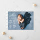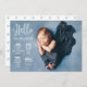Ett modernt och minimalistiskt födelseattest med ett bild i ditt nyfödda pojke, med en övertäckningstext i pastellblått och vitt typsnitt som läser Hej, är jag Jackson (anpassade med din baby namn). Födelsestatusen kan anpassas genom att malltexten redigeras och representeras med enkla vita ikoner. Kortets baksida har ett sött ljusblått hjärta mönster på vit bakgrund. Kontakta mig gärna på zolicestore@hotmail.com om du vill ha fler anpassningar eller matchande artiklar.