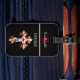 Ett rött och vitt kors med en framträdande lönnlövssymbol.