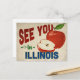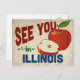 Ett charmigt Illinois vintage resor-vykort med ett fint rött äpple, tillsammans med texten från roligt retro stil där det står: "Se dig i Illinois"
