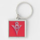 IllusionkromV8 Emblem på rött läder Fyrkantig Silverfärgad Nyckelring