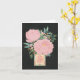 Ett illustrerat Mors dag-kort har handmålade bilder av blommor i en teburk med handskriftsbokstäver.