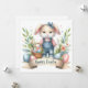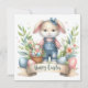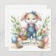 Det här är en förtjusande illustration med Påsk-temat och med en söt knipa klädd i denim overalls och en stripe-skjorta. Bunny är utrustad med en blå bugg på huvudet, vilket ökar dess charm. Den innehåller en liten korgvicker basket fylld med färgstarka Påskägg. Området kring bunny är vår blommor, grönt löv och större dekorerade Påskägg. Under kaninen finns det en banderoll med ord "Glad påsk" skriven i elegant. Hela stil är varm, glad och perfekt för firande i Påsk.