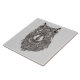 Vackert detaljerat illustrerad abstrakt av vargens huvud i svart med vita högdagrar. Ljust grått-bakgrund kan justeras till bitljusare eller mörkare grått genom att ändra bakgrundsbilden färg. Ljust grönt ögon accent färg.