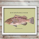 Grupperfisk (Epinephelinae) illustrerar artificiellt utsmält med latinskt och vanligt namn i typografi för grupperfiskenentusiaster. Grupperaren är vanlig på bukt kusten i Florida (och på många andra platser) där många restauranger har en namnteckning gruppermacka.