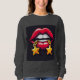 En tydlig illustration med glansigt rött läppar, med gult stjärnor i blå bakgrund, som framkallar en känsla av modern, konstnärlig och djärv estetik.
