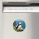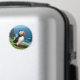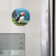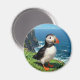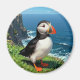 En söt lunnefågelmagnet med en söt illustration av en lunnefågel som sitter vid havet på en sanddyn eller avsats vid havet.
