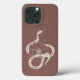 En modern boho-design i elegant i dramatiskt färg med ett känsligt hand plockade-serpent orm med botaniska markeringar, som är kokt runt en linjerriterad blomillustration på en mörk terracotta-bakgrund.