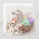 En söt illustration av en bunny med Påskägg i basket och blommor