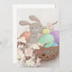 En söt illustration av en bunny med Påskägg i basket och blommor