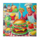 Illustration av Retro Hamburger Tecknad Kakelplatta