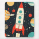 En pulserande reflekterad illustration av en klassisk raketstråle som bläster ut i rymden, omgiven av färgfulla planeter, stjärnor och kosmisk inslag. användan är fet , teals och orangar mot mörkens stjärnbakgrund och framkallar sci-fi-tetik i mitten av århundradet. Den här visuella och nostalgiska teckningen är perfekt för barn. Det bästa med den här talesättet är att du kan anpassa den med din barn namn.