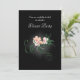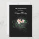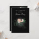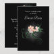 En klassisk och elegant inbjudan till middagsfest med en illustration av några ömtåliga rosa blommande blommor med gröna virvlar och blad på en svart bakgrund. Ljusgrå skuggning centrerad runt blommorna framhäver och framkallar deras skönhet.
