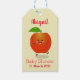 illustration av tecknaden för Cute dans-äpple Presentetikett