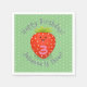 Det är party tid! Denna förtjusande jordgubbsbäck från lycklig kommer att tillföra någon roligt till party. Ritad i en söt illustration av tecknaden stil på en ljust grönt polkpunktbakgrund.