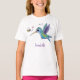 Den här söta designen har en grönt och lila lycklig hummingbird med en bivän. Allt är klart i lycklig tecknad, illustration stil!