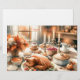 Middag i Thanksgiving med vattentorg med en guldbrun rostad kalkon centrerad på en elegant bord. Mjuka ljusflimrar, som kastar en varm glöd över en mängd efterrätter. Ett mysigt kök med russindekorfärg sätter en svetsande atmosfär och förbättrar församlingens festliga anda.
