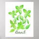 Vattenfärgsbasilika, örtarillustration, köksvägg konst av vattenfärgen Cheng Jing.