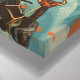En utförlig illustration visar en Viking-krigare, skriven i en armé och en hornhjälm, som står mot en bakgrund av snurrande blått och orange. Krigarens ansikte är vävt och bestämt, hans långa skägg flödar i bröstet. Han håller ett svärd i högernas hand, det är fullt förtrollat med kavlar.