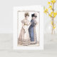 Denna återgivning av ett underbart antikexempel från tidskriften "Costumes Parisiennes" i mode visar två kvinnor på en promenad. Kortet är 1824.