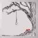 Illustration av en hangmans snara som bara hänger på från träd med röda svampar vid basen av träd.