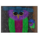 Fångstfången Uggla står högt bredvid sin lilla ugga. Torkade på ljusa färger av blues, kalkgrönt, lila och fuchsia.