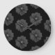 "Illustrerad blomma i Black Grått Mönster" Stor Klocka