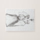 Enkelt svartvitt ritar skissar illustrationen av baksidaen av en brud och ansar framme av en kor med två vigselringar.