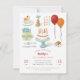 En söt födelsedagsinbjudan innehåller originalfärgade gouacher som illustrerar plagg och kakor av party. Det är bra för födelsedagsfestens för barn och vuxnor.