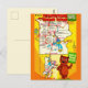 Det är en vintage, underbart färgrik karta över Yellowstone & Teton nationalparker som återanvänts på ett vykort.