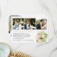 Modern bröllopsfototackkort som ingår i Timeline bröllopssamlingen. Den har en vacker akvarell brudbukett och en bil med 'just gifta' på baksidan. Lägg till ert eget parfoto och tacktext för att göra detta tackkort unikt. För matchande artiklar och anpassade redigeringar kontakta Designer LeahG.