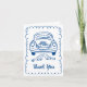 I roligt har bröllop ett tack för att du har ett handritat "ny gifta"-kort med de koniska burkarna bundna till stötfångaren. I bakfönstret finns namnen med "Tack" i modernt penselskript. Man ser skräddarsydd och roligt, men ändå romantisk! Se samlingen för fler objekt.