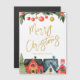 Denna vackra julmagnet i hälsning har en mysigt helgdag by med illustrerade vinterhus och vackra julprydnader och den vackra gräs-trädgården på vit bakgrund. God jul-skript och ditt anpassade namn sitter i mitten. Köp den här butiken för att samordna julprydnader och ytterligare alternativ för helgdag färg!