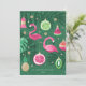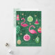 Skicka lite paradis till dina kära - för julen kan vara fin och ljus, även utan snö! Belysande illustrationer av flamingos och tropiska fruktornament. Anpassa det här kortet med ditt namn och år. Den guld glitter som används i detta tryck simuleras, inte glitter. Originalteckningar efter Marketa Stengl.