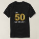 Celebrate a milestone 50th birthday with a touch of humor! This unique design features the bold statement 'I'm 50 SO WHAT!' in a striking gold and white font against a black background. Perfect for anyone turning fifty who embraces their age with humor. It's an ideal way to bring a smile and a laugh to birthday boy or girl. A fantastic gift for friends, or family who love a good joke and a stylish design.