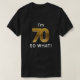 Celebrate a milestone 70th birthday with a touch of humor! This unique design features the bold statement 'I'm 70 SO WHAT!' in a striking gold and white font against a black background. Perfect for anyone turning seventy who embraces their age with humor. It's an ideal way to bring a smile and a laugh to birthday boy or girl. A fantastic gift for friends, or family who love a good joke and a stylish design.