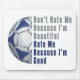 Futbal Art hatar mig inte eftersom jag är Bra t-shirts, gåvor och tillbehör som skapats av ITD Sports Center och har vårt originalverk av en halv blå och vit futbal boll på den lämnat sidan med ord i grått och blå på högerna, Hate mig inte för att jag är vacker, hatar mig för att jag är Bra. Vår roligt och våra konkurrenskraftiga sportar är underbara gåvor till fotboll älskare, fuybal älskare, fotbollsspelare, fotbollsstjärnor, fotboll, tränare, idrottsmän och älskare i alla åldrar. Det är roligt och spel på Imagine där! Utforma sportcenter!