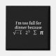 I'm Too Full For Dinner Because Square Root Math L Magnet