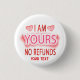 Celebrate your love with this pink "I'm Yours No Refunds" button, featuring sleek engraved text and customizable options to add your name or special message. A stylish and playful gift for anniversaries, Valentine’s Day, or just because.